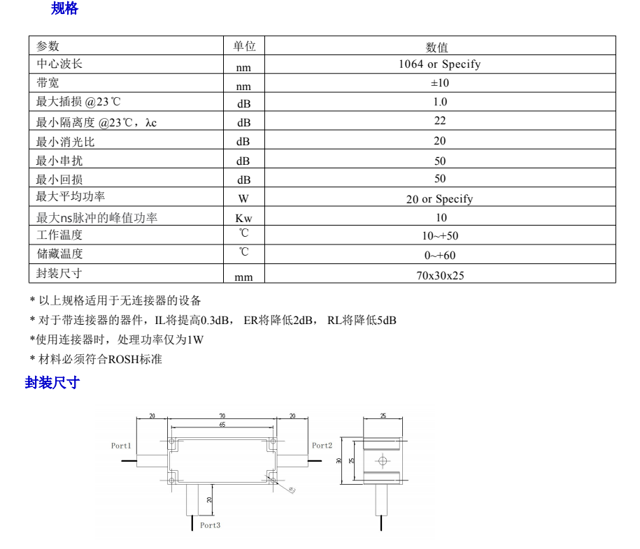 780nm 20W 高功率非保偏环形器780nm